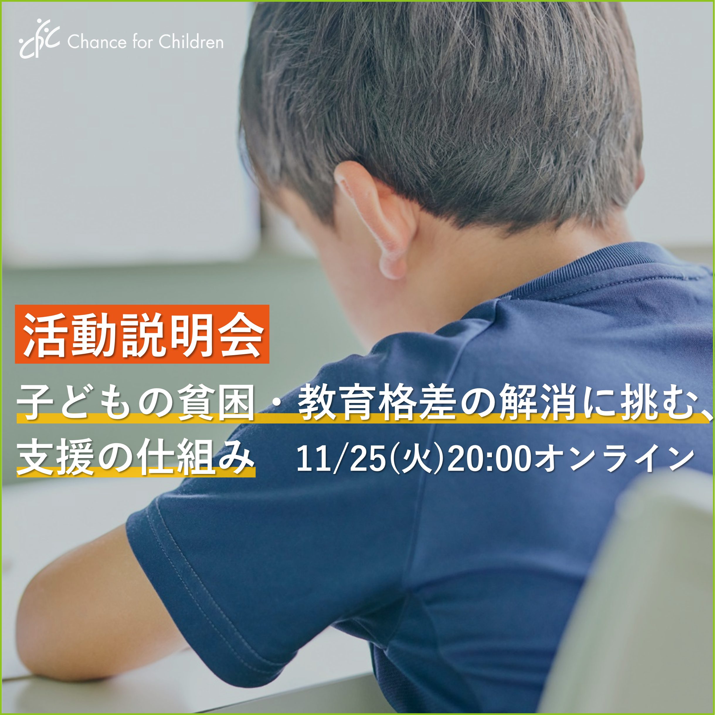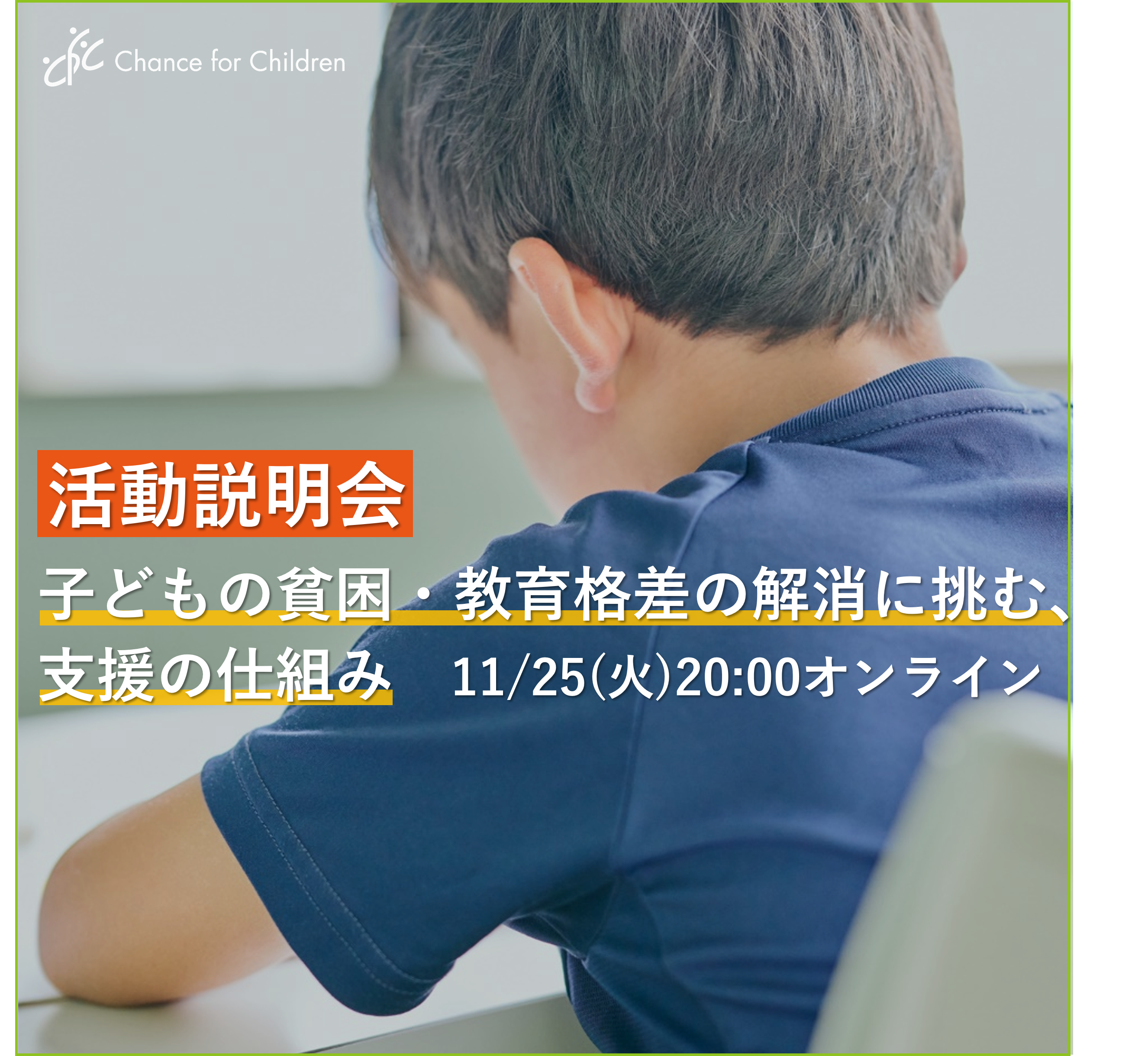 【活動説明会】子どもの貧困・教育格差の解消に挑む、支援の仕組み|11/25(火)20時~オンライン開催