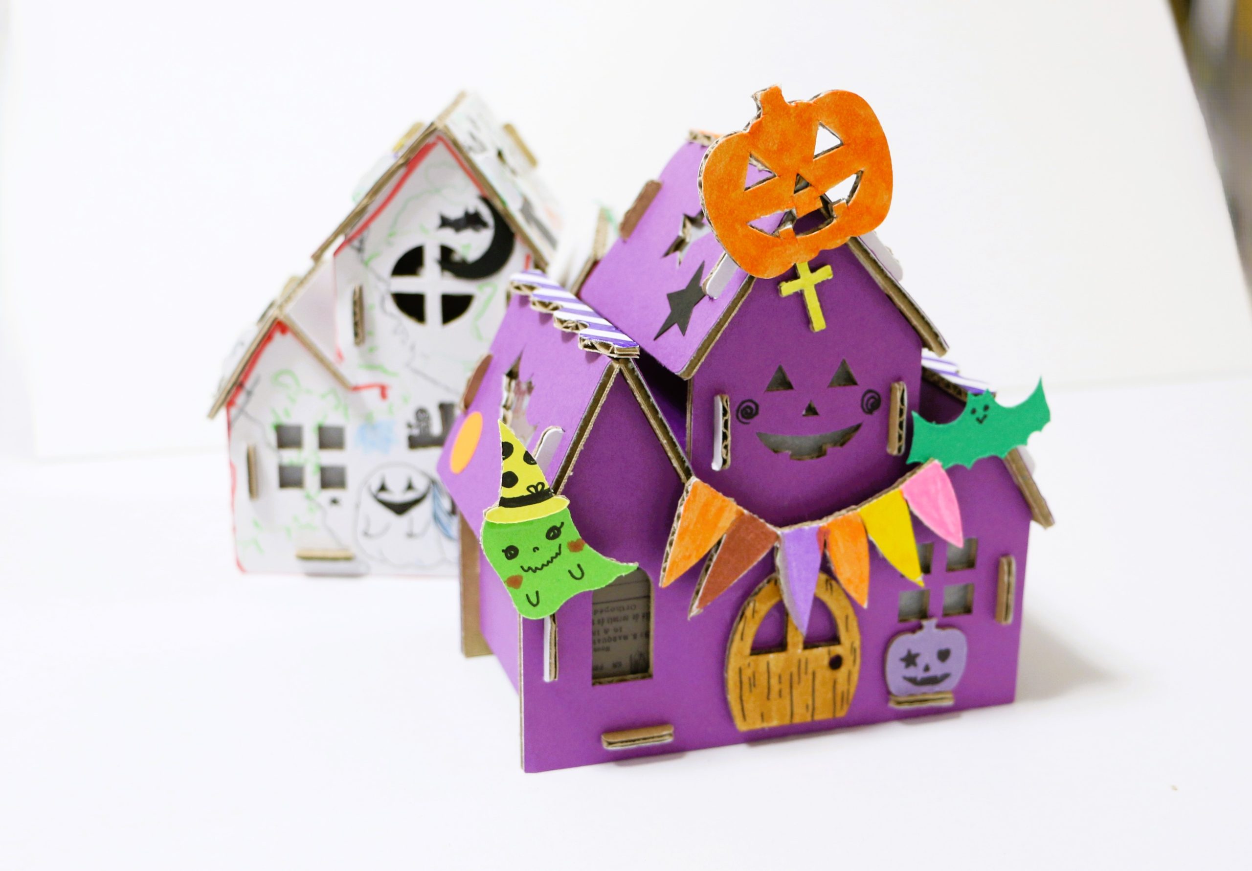 LEDライト付きの魔女の館やかぼちゃのお家に、楽しいハロウィンのパーツを自由に貼り付けてオリジナルのお家を作ろう!